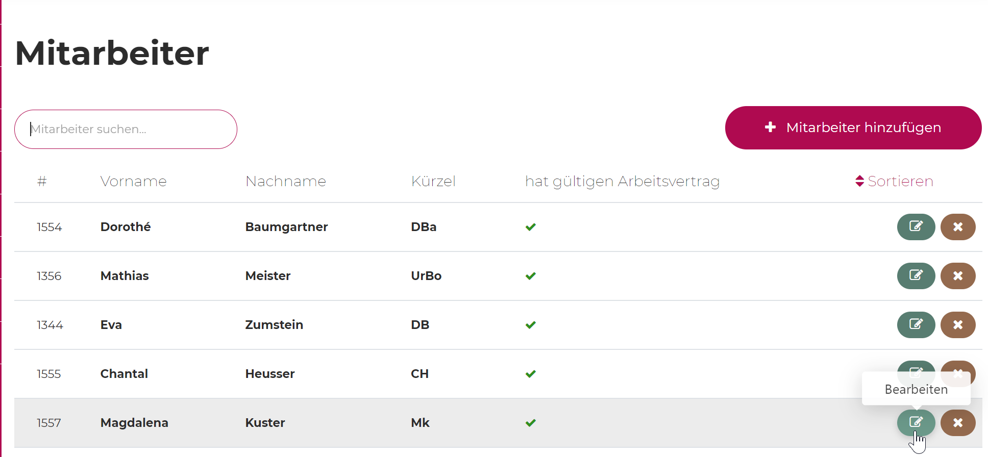Dazu auf den Mitarbeitenden gehen und auf bearbeiten drücken.